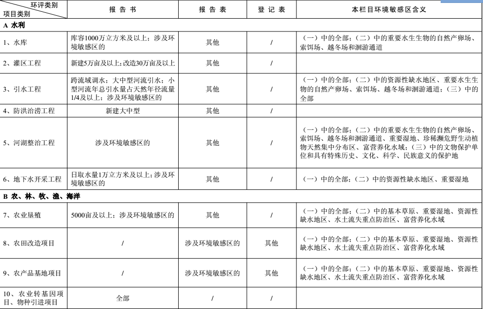 建設(shè)項目環(huán)境影響評價分類管理名錄
