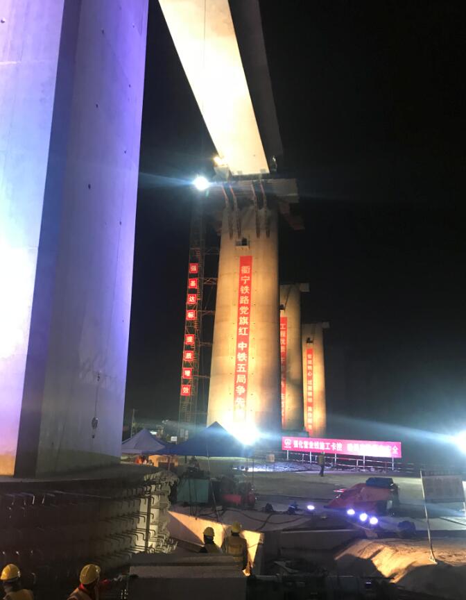 11日晚22:00,現(xiàn)場總指揮一聲令下轉(zhuǎn)體開始,T構(gòu)按照1°/分鐘的速度勻速轉(zhuǎn)動,轉(zhuǎn)體行程剩余30cm時(shí),橋上觀測人員先對橋梁的水平標(biāo)高進(jìn)行觀測,通知下方人員進(jìn)行水平調(diào)整,再對中線觀測,最后的30cm采用點(diǎn)動,避免過轉(zhuǎn)確保中軸線誤差不超過設(shè)計(jì)要求,橋身轉(zhuǎn)體實(shí)現(xiàn)“華麗轉(zhuǎn)身”,共歷時(shí)約70分。