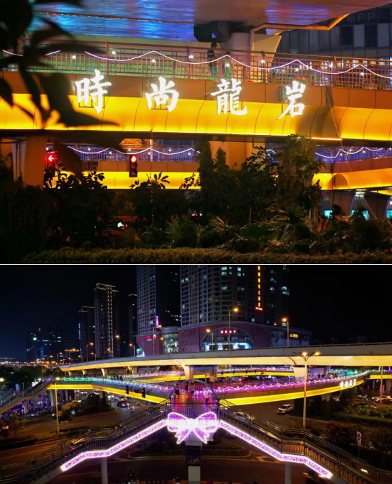 龍巖大道萬寶廣場(chǎng)人行天橋夜景文化工程完工
